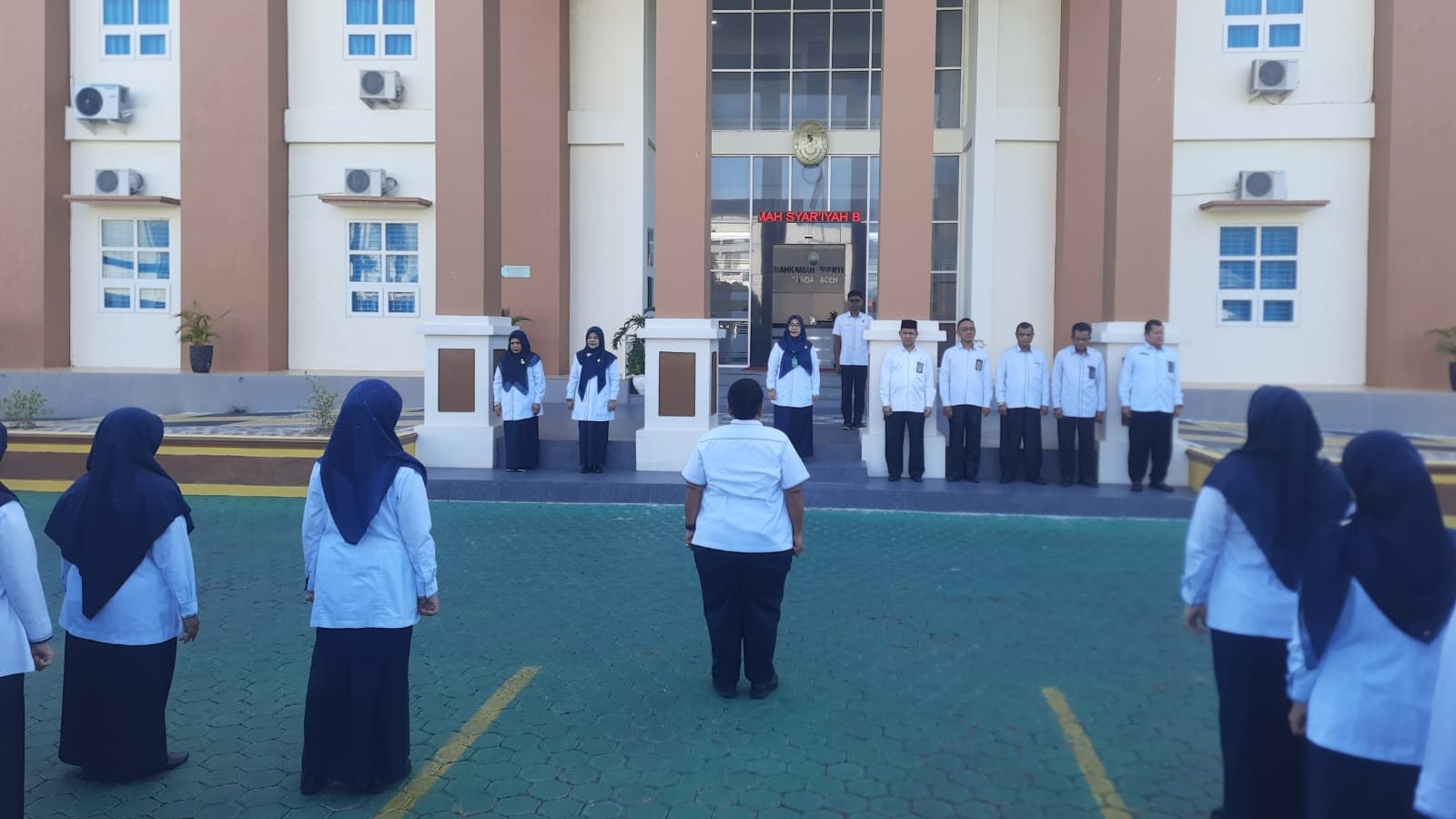 Banda Aceh, Senin 6 Oktober 2025, Mahkamah Syar’iyah Banda Aceh melaksanakan apel pagi rutin di halaman kantor sebagai wujud kedisiplinan dan tanggung jawab Aparatur Sipil Negara (ASN) dalam memulai aktivitas kerja.