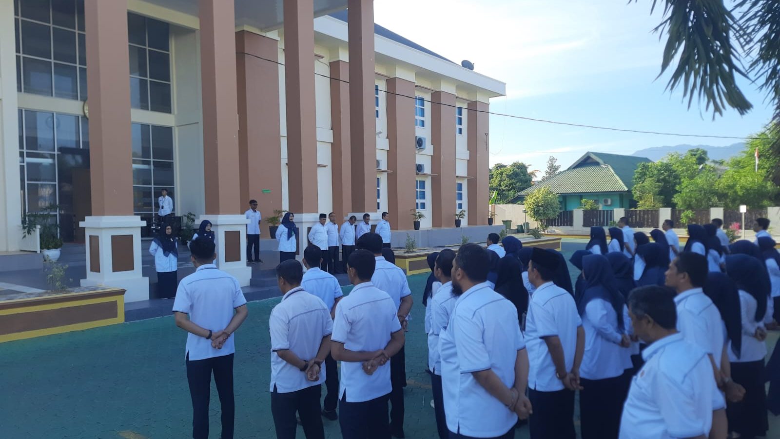 Apel pagi diakhiri dengan pembacaan doa bersama yang dipimpin oleh salah satu pegawai, memohon keberkahan dan kelancaran dalam menjalankan tugas sepanjang pekan.
