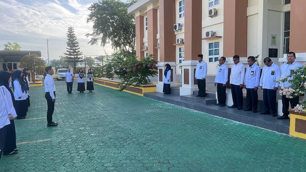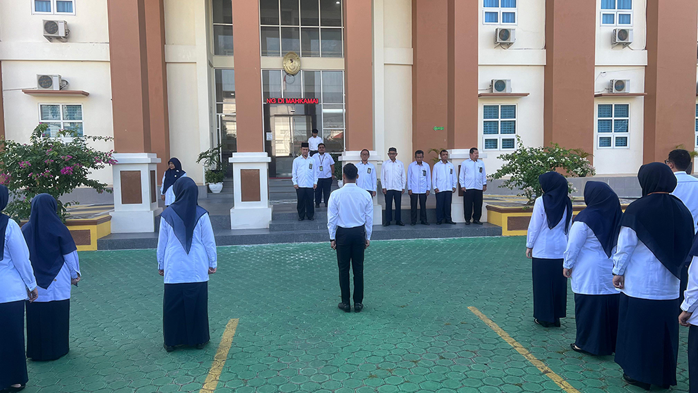 Banda Aceh – Mahkamah Syariah Banda Aceh kembali melaksanakan apel pagi rutin yang berlangsung khidmat pada Senin, 7 Juli 2025. Apel kali ini dipimpin langsung oleh Wakil Ketua Mahkamah Syariah Banda Aceh, Dr. Amir Khalis, dan diikuti oleh seluruh aparatur, baik hakim, panitera, sekretaris,pejabat struktural dan fungsional, maupun pegawai lainnya.