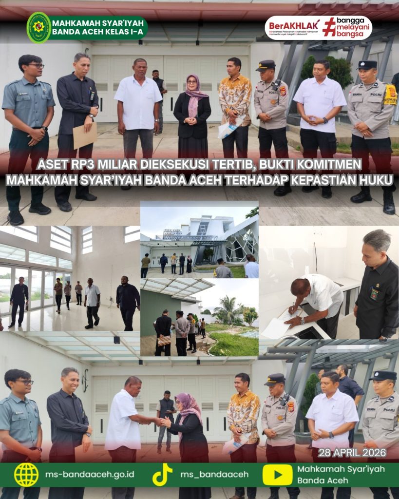 Banda Aceh, 28 April 2026 — Kepastian hukum bukan sekadar konsep, tetapi kebutuhan nyata bagi masyarakat dalam menjaga hak dan kepemilikan. Mahkamah Syar’iyah Banda Aceh kembali menunjukkan komitmennya dengan melaksanakan eksekusi pengosongan objek hak tanggungan secara tertib, profesional, dan berorientasi pada keadilan bagi para pihak.