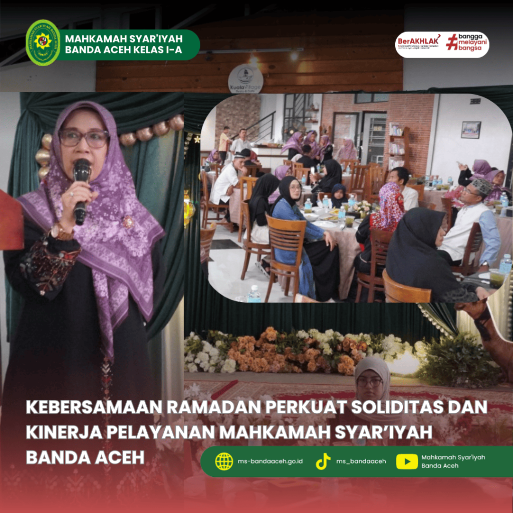 Banda Aceh – Dalam rangka mempererat silaturahmi dan memperkuat soliditas internal di bulan suci Ramadan, Ketua, Wakil Ketua, serta seluruh Hakim buka puasa bersama dengan seluruh aparatur serta keluarga Mahkamah Syar’iyah Banda Aceh pada Jumat (27/2/2026).