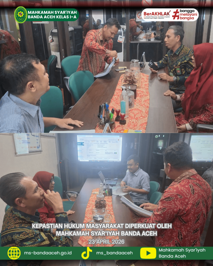Mahkamah Syar’iyah Banda Aceh terus menghadirkan layanan peradilan yang berdampak langsung bagi masyarakat melalui pelaksanaan putusan yang profesional, transparan, dan akuntabel. Kepercayaan publik dibangun melalui konsistensi dalam menegakkan hukum serta komitmen memberikan kepastian hukum yang berkeadilan.(Myq)
