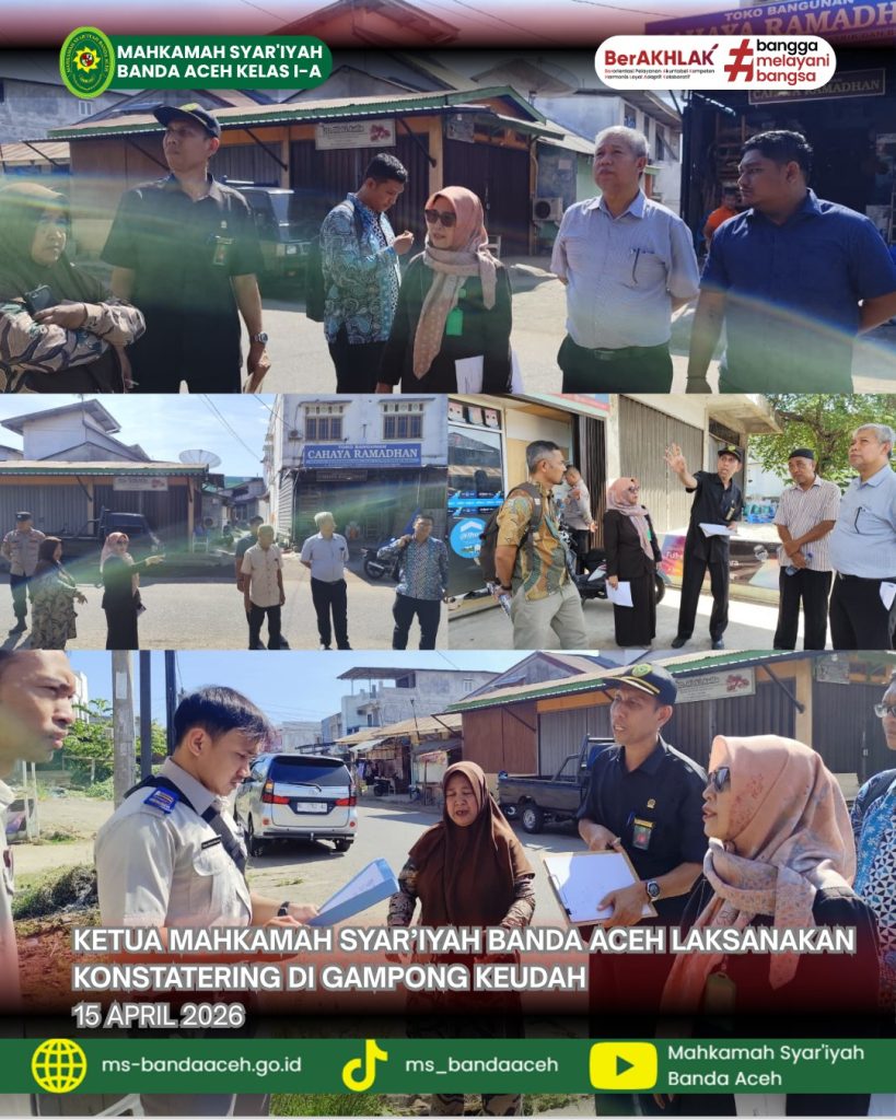 Banda Aceh, Rabu 15 April 2026 — Dalam upaya menjamin kepastian hukum dan memastikan pelaksanaan putusan berjalan sesuai ketentuan, Ketua Mahkamah Syar’iyah Banda Aceh melaksanakan kegiatan konstatering terkait perkara nomor 2/Pdt.Eks/2025/MS.Bna jo 288/Pdt.G/2023/MS.Bna. Kegiatan ini berlangsung di Gampong Keudah, Kota Banda Aceh, dengan melibatkan unsur pengadilan serta para pihak yang berperkara.