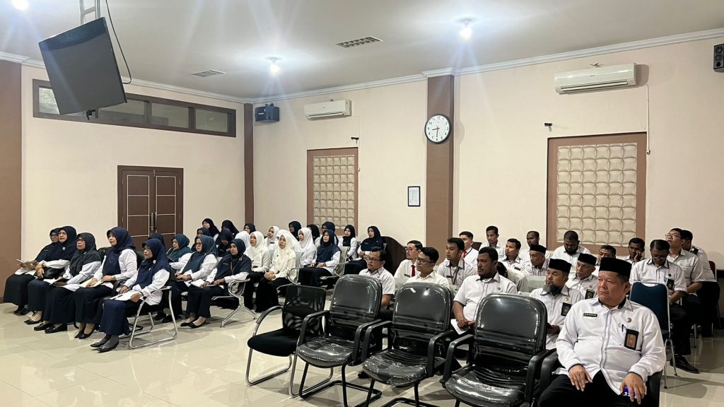 Banda Aceh, 1 Juli 2024 | Ketua Mahkamah Syar`iyah Banda Aceh Dr. Hj. Sakwanah, S.Ag., S.H., M.H. memimpin rapat umum pertama dibulan Juli 2024. Dihadiri oleh Wakil Ketua, Panitera, Sekretaris, Hakim, semua pejabat fungsional dan strukturan dan seluruh PPNPM.