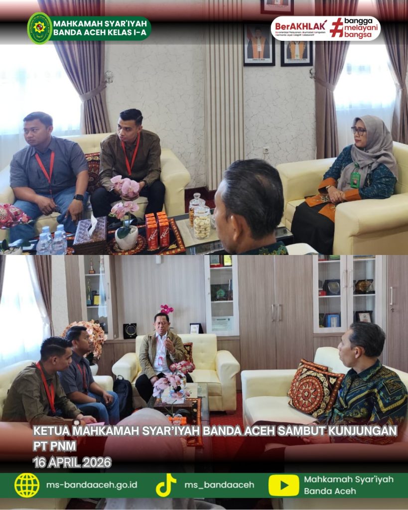 Banda Aceh, Kamis 16 April 2026 — Ketua Mahkamah Syar’iyah Banda Aceh menerima kunjungan silaturahmi dan audiensi dari PT Permodalan Nasional Madani (PNM) Cabang Aceh yang berlangsung di ruang kerja Ketua Mahkamah Syar’iyah Banda Aceh.