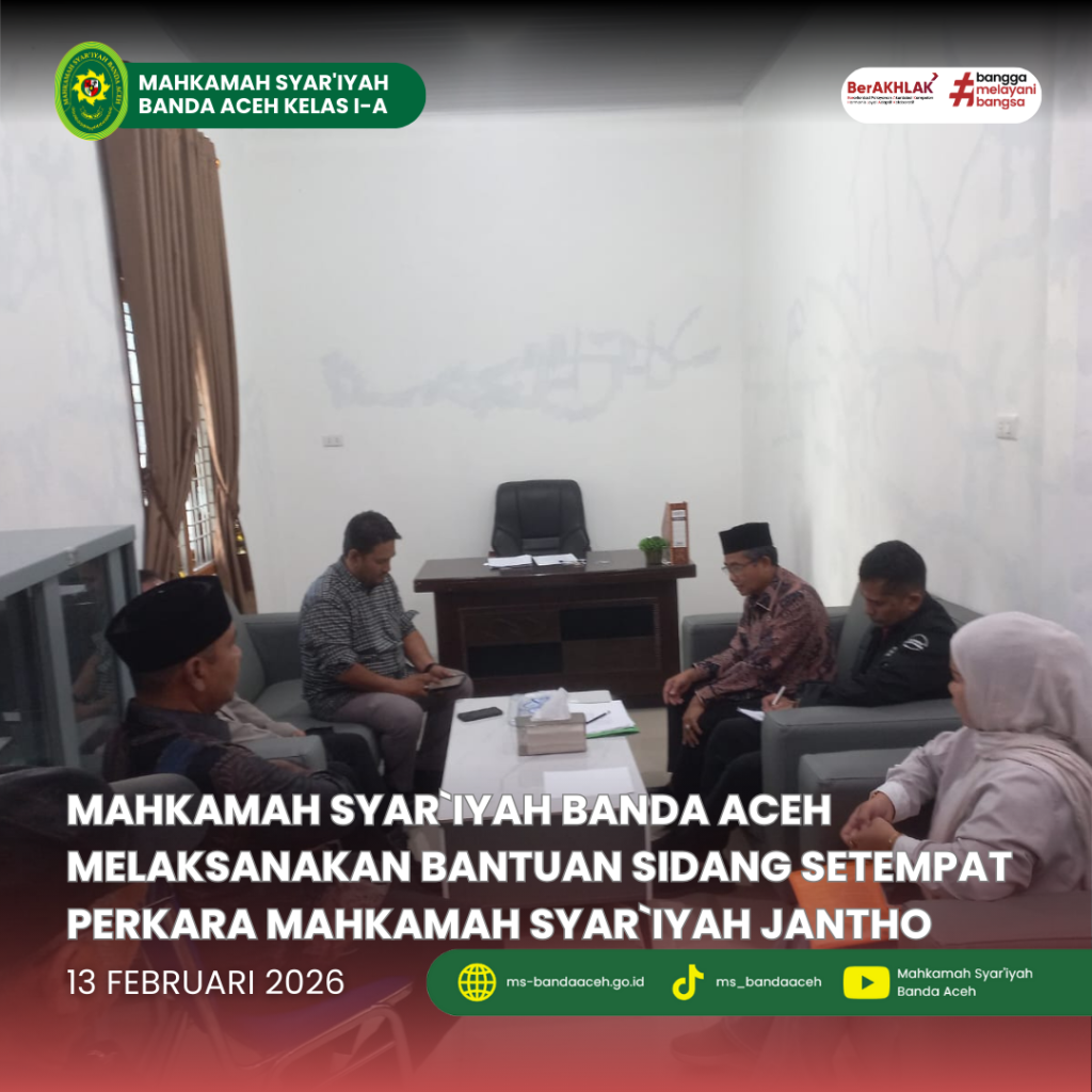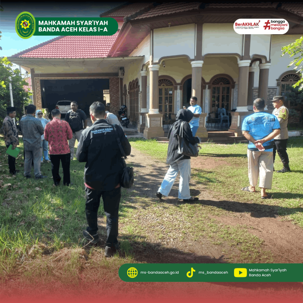 Banda Aceh, 13 Februari 2026 — Mahkamah Syar`iyah Banda Aceh melalui Hakim Komisaris yang ditunjuk Bapak Dr. Drs. Rokhmadi, M. Hum., dibantu T. Firman Nur, S.H.I., sebagai Panitera Pengganti dan Nasrullah, S.E., sebagai Jurusita di bantu oleh Supriyadi, S.H., melaksanakan bantuan sidang setempat (Decente) Mahkamah Syar`iyah Jantho Nomor 336/Pdt.G/2025/MS-Jth harta seharkat. Kegiatan ini dilaksanakan di gampong Lamgugob Kecamatan Syiah kuala Kota Banda Aceh. Kegiatan berlangsung sejak pukul 09.00 WIB yang dibuka dikantor Geuchik, dihadiri langsung oleh Geuchik Gampong Lamgugob, dimana dalam muqaddimah pembukanya beliau berharap, bahwa Geuchik Lamgugop sudah mendapat informasi tentang sengketa ini dari pihak keluarga, dan diharapkan dapat diselesaikan dengan baik, sehingga keamanan dan kenyamanan masyarakat dan lingkunngan dapat terpelihara.