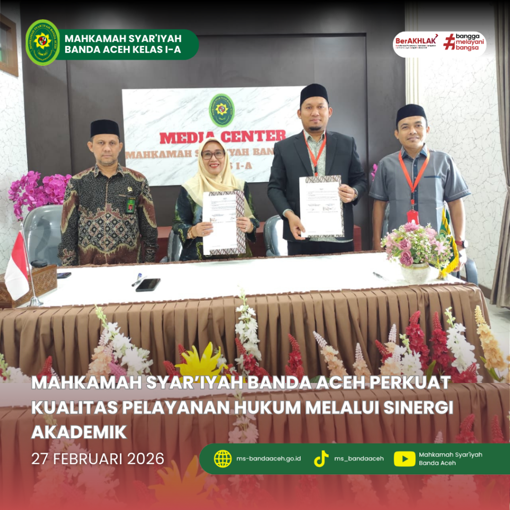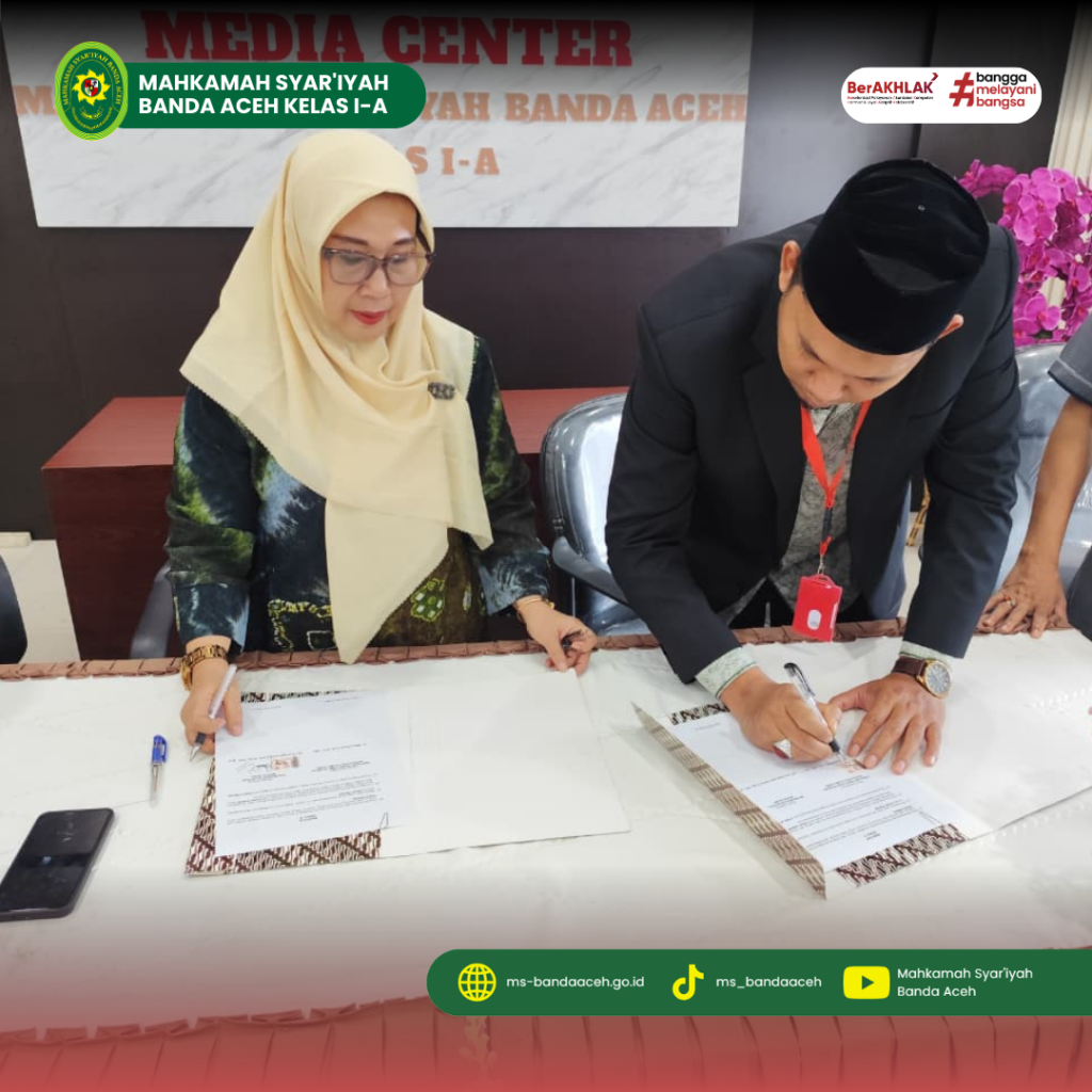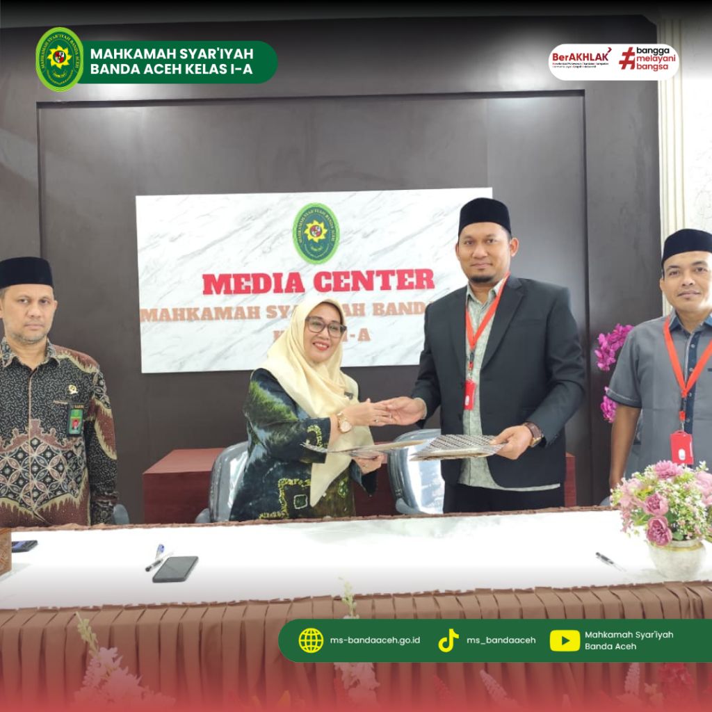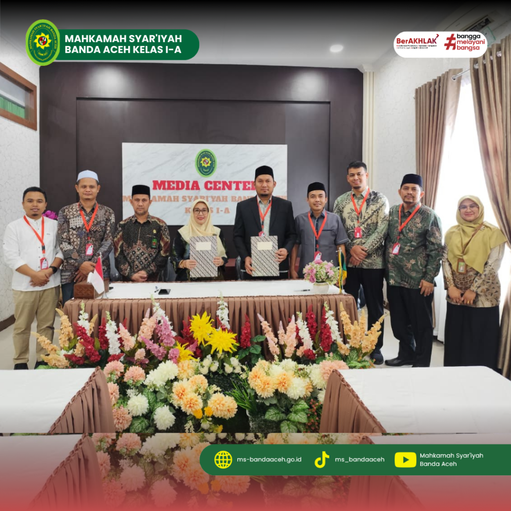 Banda Aceh – Komitmen menghadirkan pelayanan hukum yang profesional, transparan, dan berkualitas bagi masyarakat terus diperkuat oleh Mahkamah Syar’iyah Banda Aceh. Melalui kolaborasi strategis dengan dunia pendidikan tinggi, lembaga peradilan ini memastikan bahwa peningkatan kapasitas sumber daya manusia berjalan seiring dengan kebutuhan masyarakat pencari keadilan. Di Ruang Media Center Mahkamah Syar’iyah Banda Aceh, Jumat, 27 November 2025, telah dilaksanakan penandatanganan Nota Kesepahaman (Memorandum of Understanding) antara Mahkamah Syar’iyah Banda Aceh dan Sekolah Tinggi Ilmu Syariah (STIS) Nahdlatul Ulama Aceh.