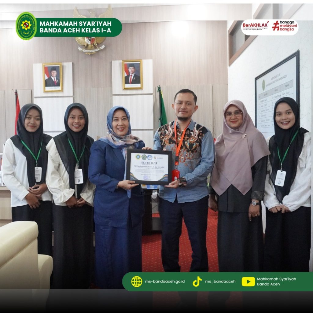 Banda Aceh, Selasa 02 Desember 2025, Ketua Mahkamah Syar’iyah Banda Aceh menerima kedatangan perwakilan Universitas Iskandar Muda (UNIDA) Banda Aceh dalam rangka penjemputan mahasiswa magang yang telah menyelesaikan masa magang selama satu bulan di Mahkamah Syar’iyah Banda Aceh.