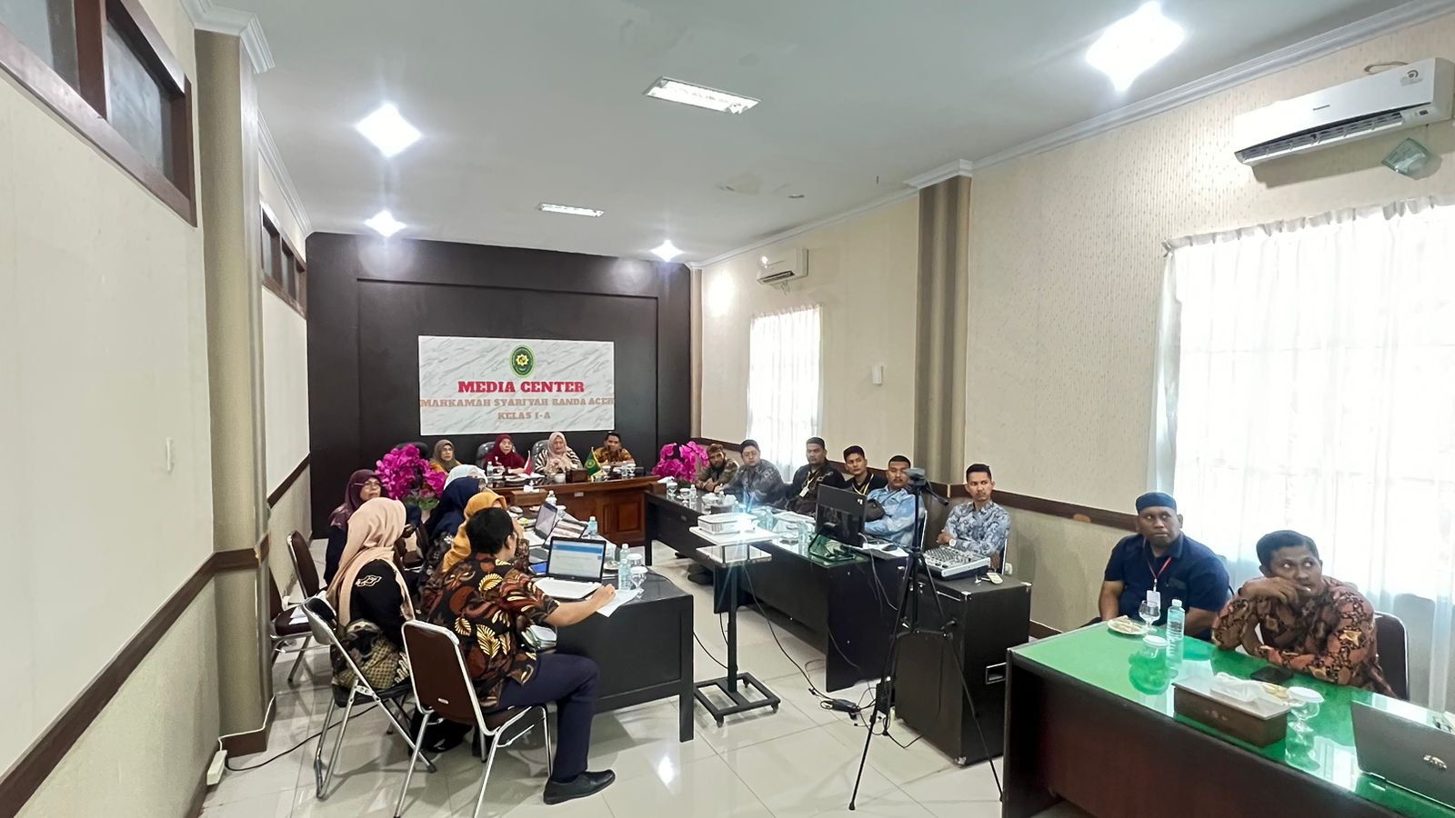 Banda Aceh, Kamis (05/09/2024) — Bertempat di Ruang Media Center Mahkamah Syar’iyah Kota Banda Aceh, pada hari Kamis 5 September 2024 diadakan Rapat Evaluasi Survey Kepuasan Masyarakat (SKM). Rapat dipimpin oleh Ketua Mahkamah Syar’iyah Banda Aceh Dr. Hj. Sakwanah, S.Ag., S.H., M.H. serta Wakil Ketua Mahkamah Syar’iyah Banda Aceh Fauziati, S.Ag., M.Ag. Rapat juga dihadiri oleh Panitera Mahkamah Syar’iyah Banda Aceh Ratna Juita, S.Ag., S.H., M.H., Sekretaris Mahkamah Syar’iyah Banda Aceh Samsir Toona, S.H.I., Hakim Mahkamah Syar’iyah Banda Aceh, Panitera Muda (Panmud) Gugatan, Panmud Permohonan, Panmud Jinayat, Panitera Pengganti serta Staf Mahkamah Syar’iyah Banda Aceh. Rapat juga dihadiri oleh pihak eksternal yakni Para Mediator Non Hakim, Advokat serta Sekdes.